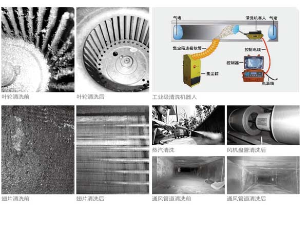 隨著空調(diào)使用年限的增加,通風(fēng)系統(tǒng)內(nèi) (管道、風(fēng)機(jī)盤管的翅片、渦輪電機(jī)的扇 (管道、風(fēng)機(jī)盤管的翅片、渦輪電機(jī)的扇葉、新風(fēng)機(jī)組換熱板翅片、空氣過濾器等)逐漸堆積起了大量的污染物,既增加了設(shè)備的負(fù)荷又浪費(fèi)了電力還給室內(nèi)的空氣帶來了極大的污染。這些灰塵中有大量有害的細(xì)菌、霉菌、軍團(tuán)菌和病毒,嚴(yán)重威脅我們的健康,《2002年世界衛(wèi)生報(bào)告》將室內(nèi)空氣污染列為人類健康十大危害之一。我們?cè)谙硎苁孢m的同時(shí)它也給我們帶來了污染和危害。